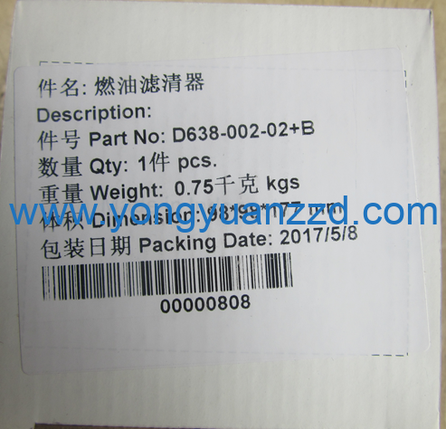 FOTON 燃油滤清器 Part High-quality FOTON spare part, applicable to series machinery. OEM Code: SC-D638-002-02 Original source: https://yongyuanzzd.com
