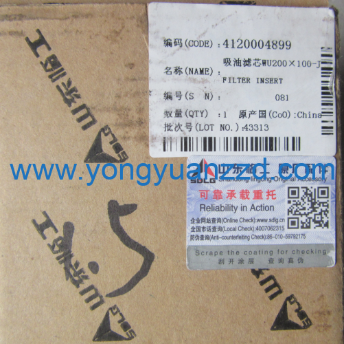 SDLG Oil suction filter WU200 × 100-J High-quality SDLG spare part, applicable to l series machinery. OEM Code: 4120004899 Original source: https://yongyuanzzd.com