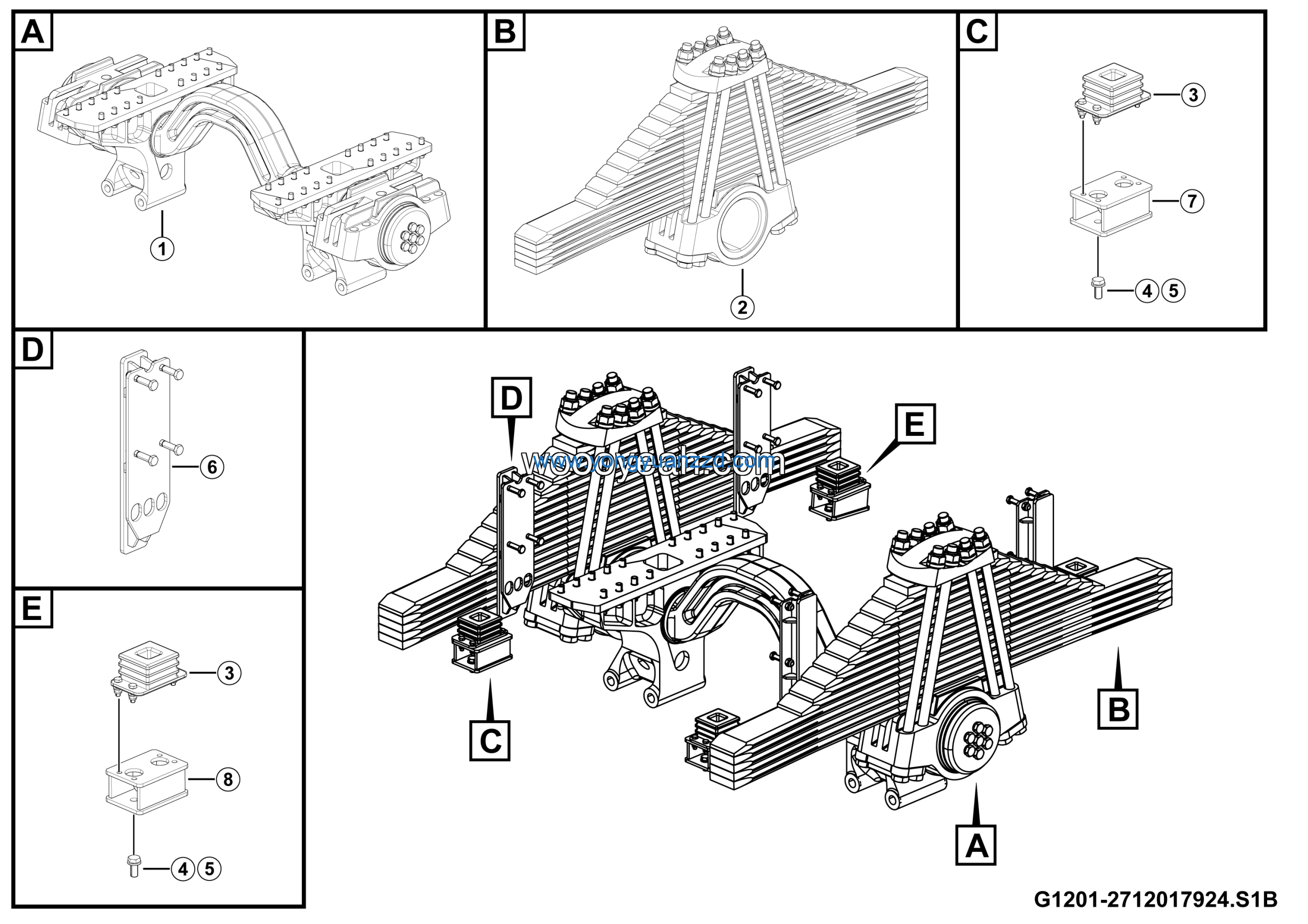 | 7 | Bearer of middle axle spacing block | 27120122951 | 2 |