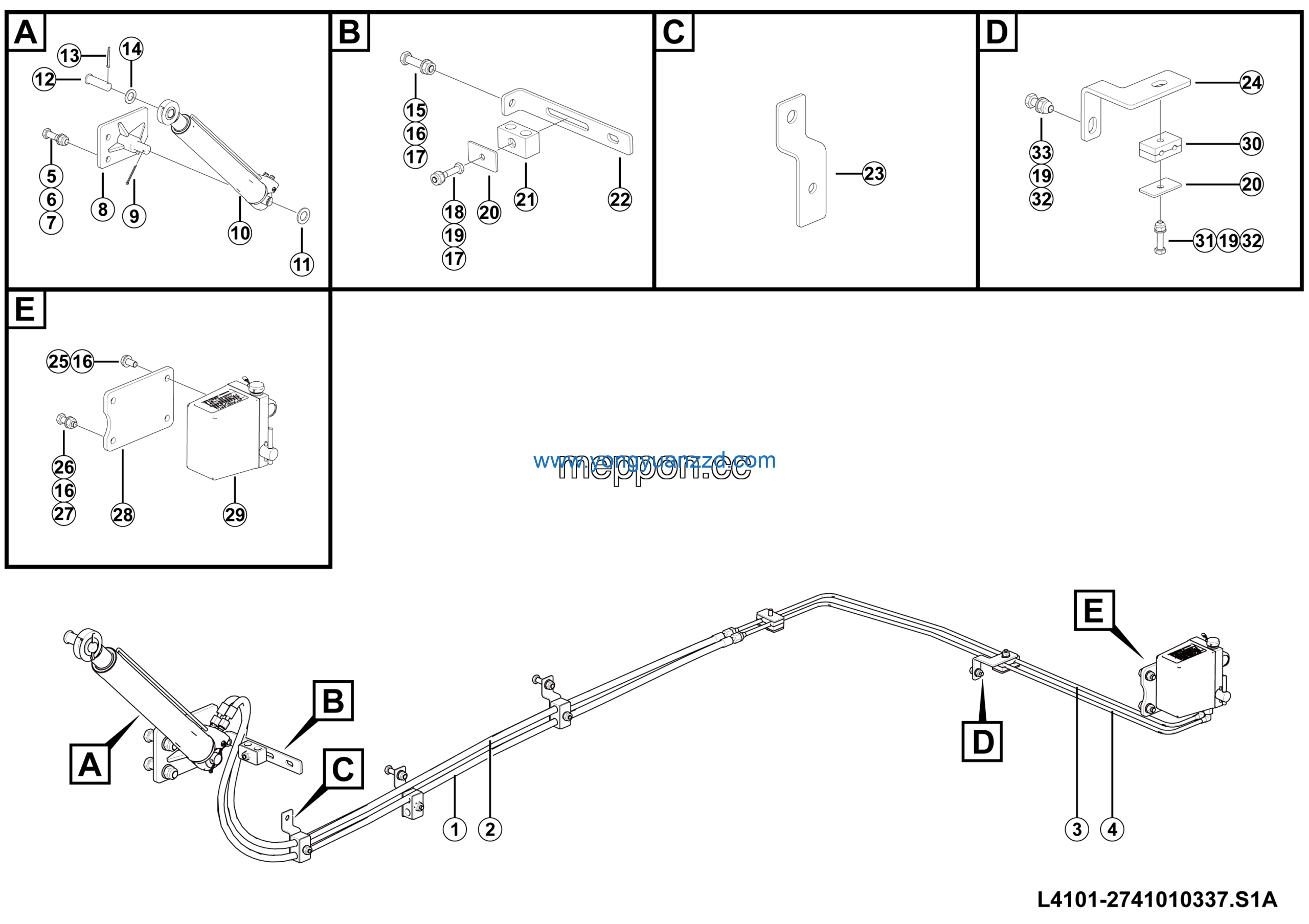 | 1 | Cab overturning cylinder | 4120001145 | 1 |