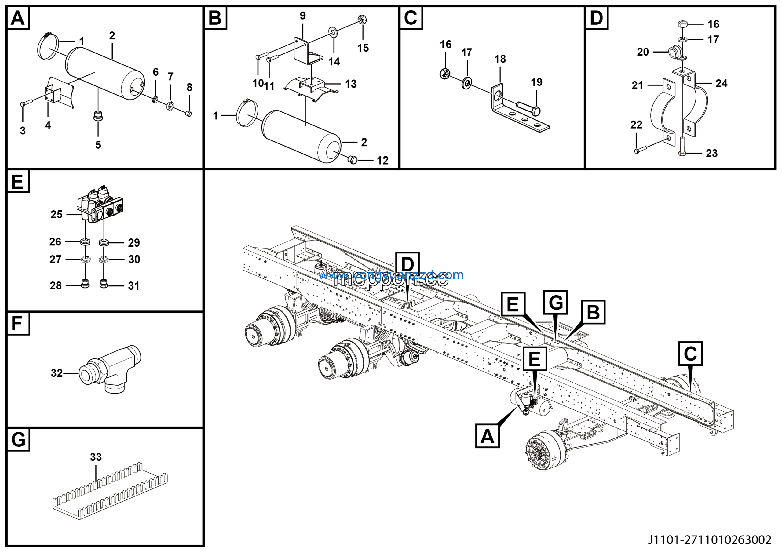 | 33 | Air reservoir fixed bracket assembly | 27110102612 | 1 |