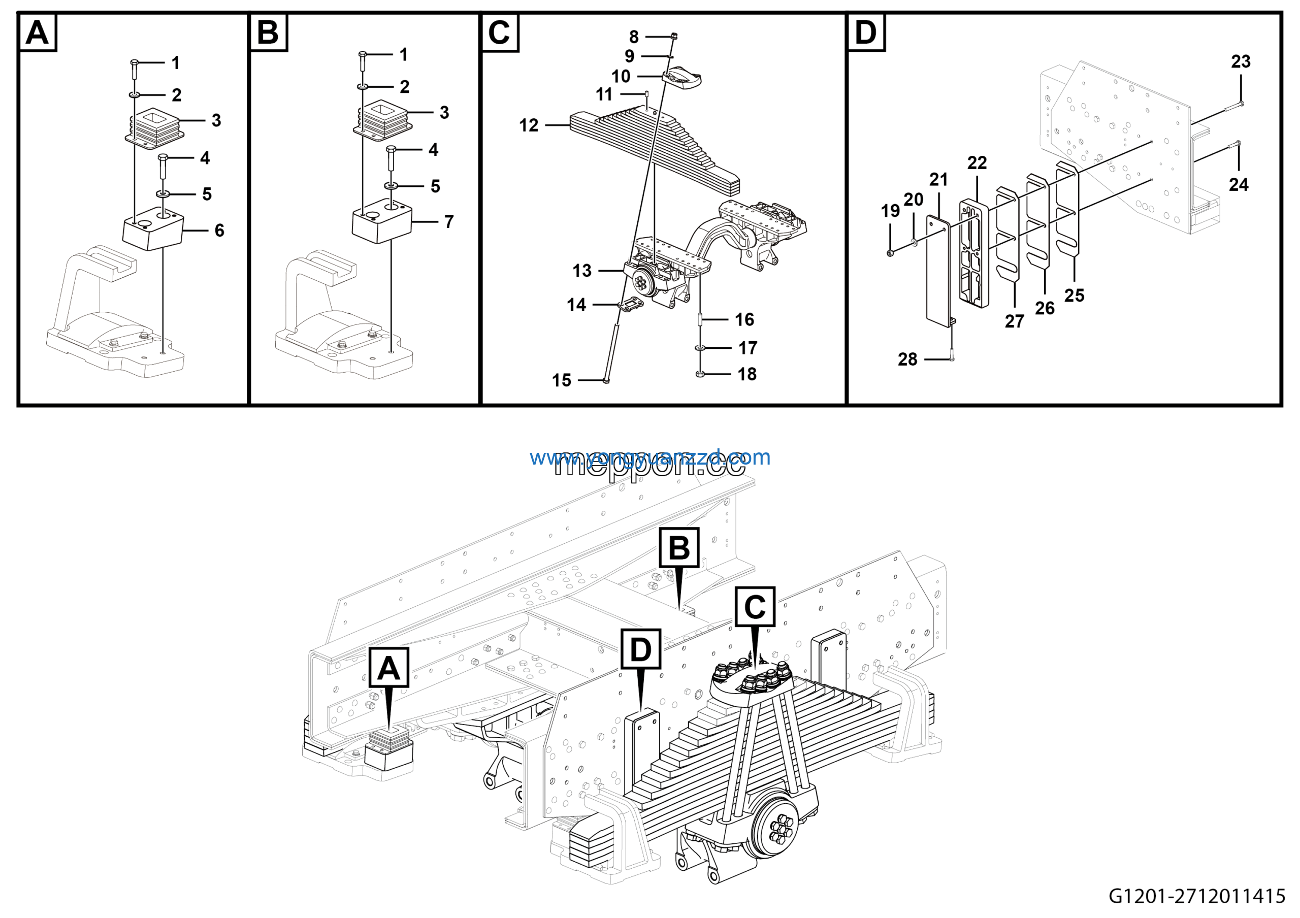 | 25 | Bearer of middle axle spacing block | 27120114681 | 2 |