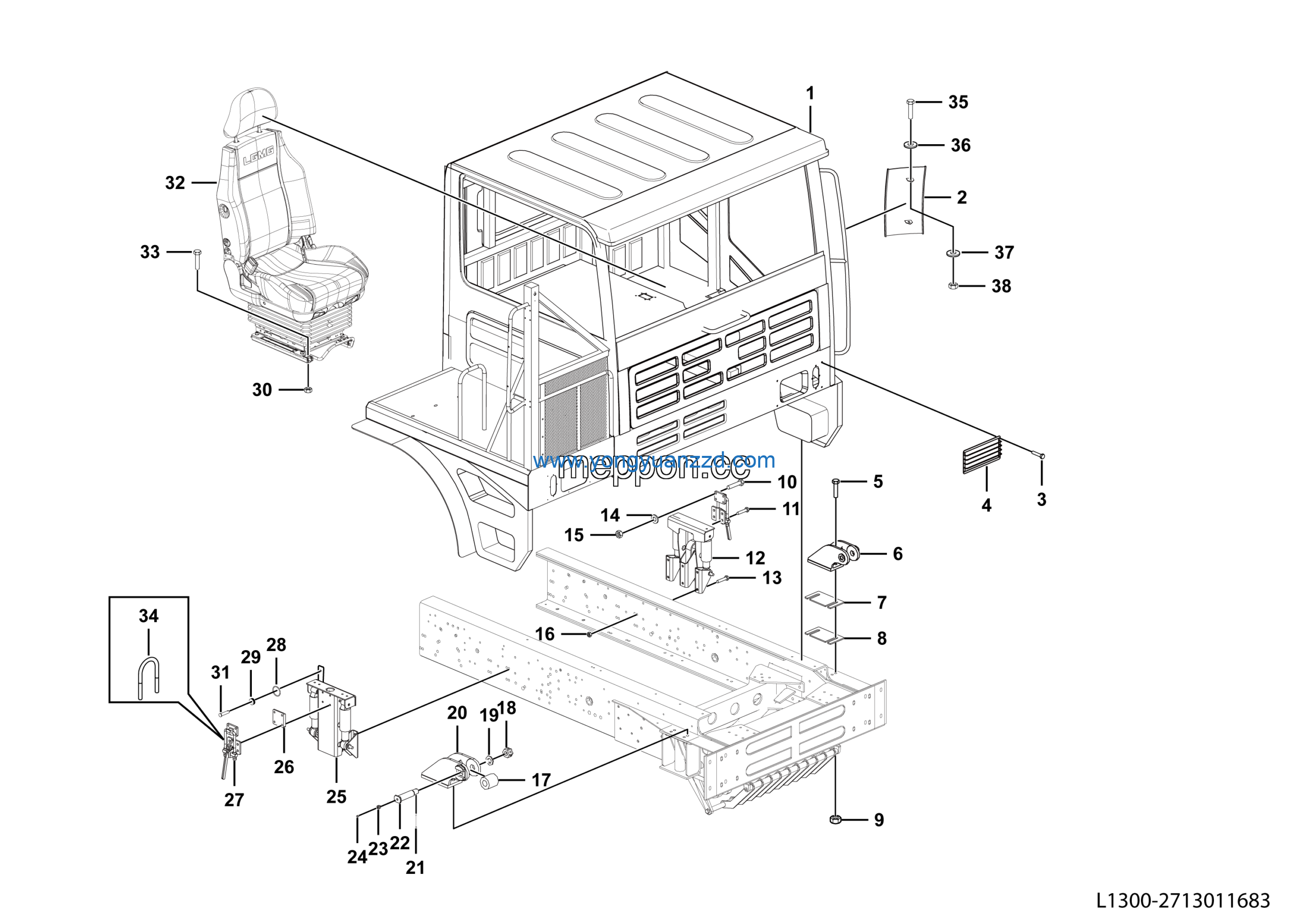 LGMG MT95 Mine Truck – Cab assembly – L1300-2713011683