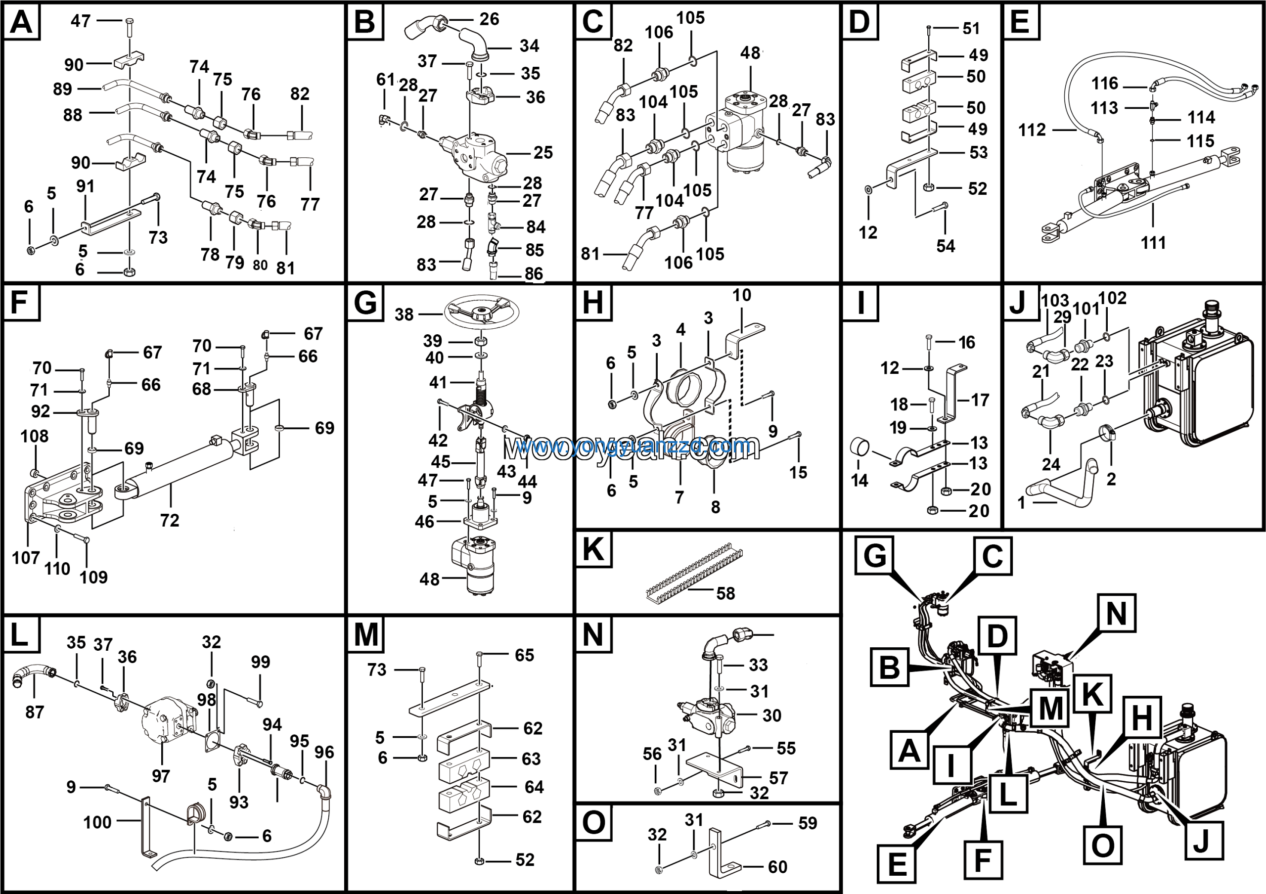 | 86 | Steering cylinder HSGL-80*45*390-700 | 4120001483 | 2 |