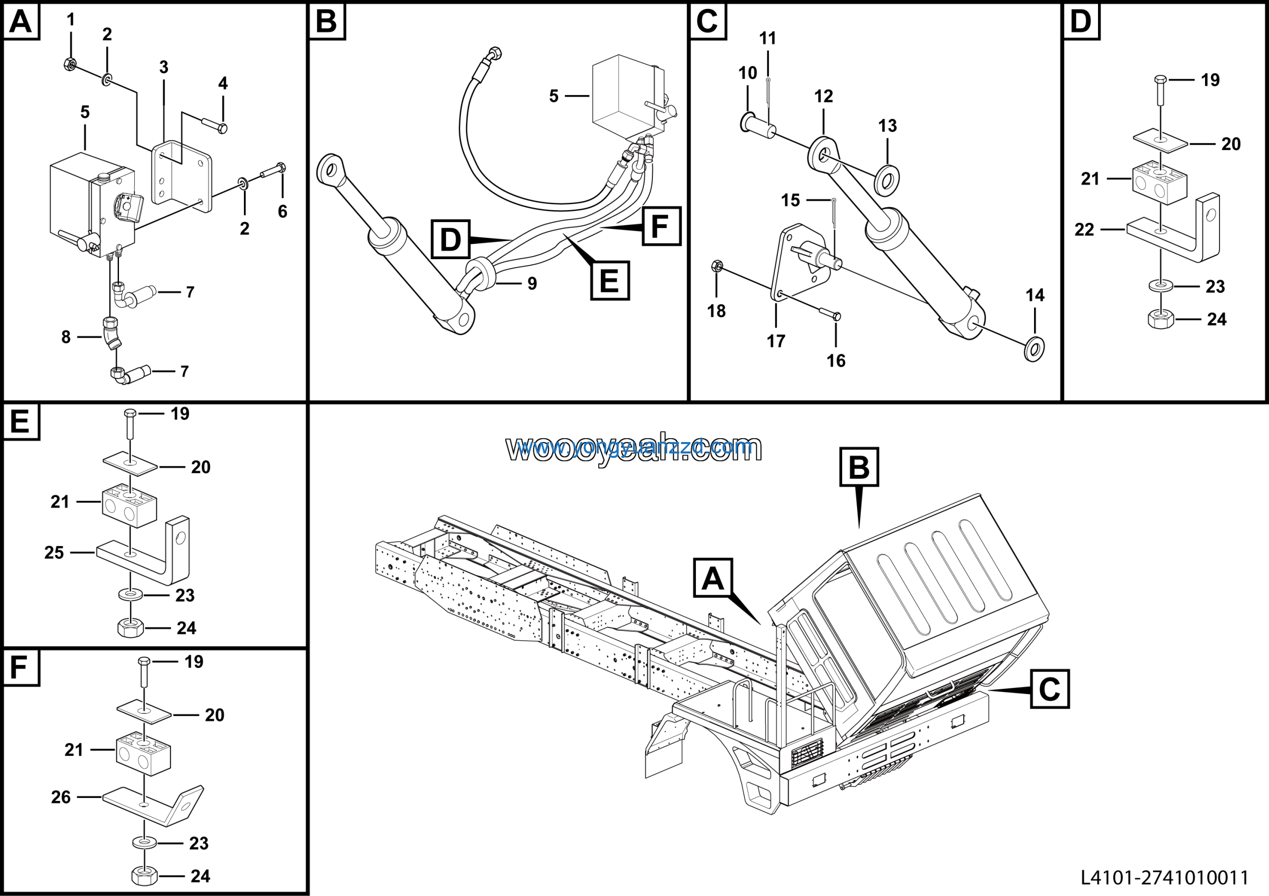 LGMG Off-Highway Dump Truck 2021 – Cab fliping hydraulic assy – L4101-2741010011