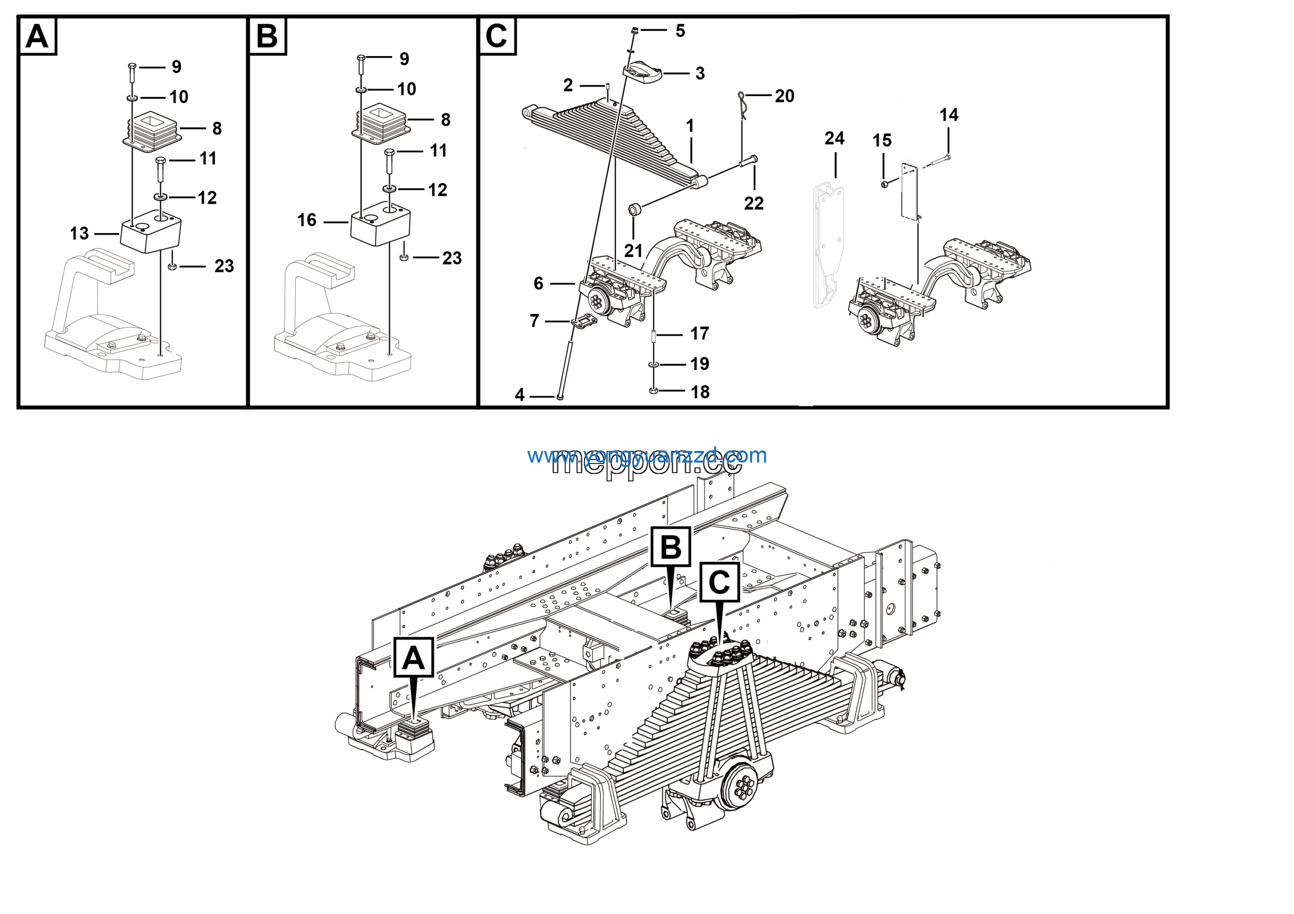 | 4 | Bearer of middle axle spacing block | 27120123401 | 2 |